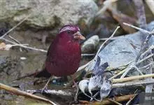 藏朱雀:全长约17-18厘米。雄鸟头部深红色具光辉,喉部暗红色具白色点斑;背部灰白色,各羽具玫瑰红色羽端,形成许多斑纹;腰部淡玫瑰红色;翅暗褐色,沾灰白,羽端沾玫瑰红或灰白色;尾暗棕色,端缘玫瑰红色…全部>>