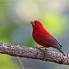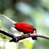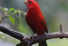 血雀雀科朱雀属鸟类,体重36-49克;体长155-182毫米。雄鸟除眼先、翼与尾为黑色外,通体为鲜红色;嘴鲜黄;雌鸟暗橄榄绿色,羽端较淡或带黄色;腰鲜黄;嘴较暗。虹膜褐色;嘴黄色;腿和脚褐色。…全部>>