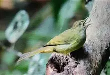 黄绿鹎,小型鸟类,体长19-22厘米。额至头顶暗褐具灰色羽缘,眼先黑色,其上面有一粗著的白纹从鼻后至眼,在黑色的头部极为醒目。上体橄榄绿褐色。颏、喉淡灰色或灰白色,胸灰褐色具橄榄黄色羽缘,…全部>>