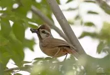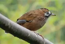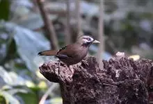白颊噪鹛是雀形目噪鹛科噪鹛属鸟类,又称土画眉、小画眉、小噪鹃。成鸟额至头顶栗褐色,长眉纹、眼先和颊纹棕白色,眼后至耳羽深褐色,…全部>>