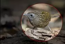 黄喉雀鹛是雀眉科、拟希鹛属小型鸟类,体长11-12厘米。头顶浅黄色具黑色鳞状斑,头顶两侧各有一道黑色侧冠纹,眉纹浅黄色、长而宽阔。上体灰绿色,两翅和尾褐色而具浅黄色窄缘。下体淡黄色。特征明显,…全部>>