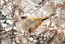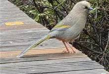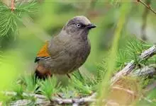 橙翅噪鹛:是噪鹛科、彩翼噪鹛属的中型鸟类,体长22-25厘米。头顶深葡萄灰色或沙褐色。上体灰橄榄褐色,外侧飞羽外翈蓝灰色、基部橙黄色,中央尾羽灰褐色,外侧尾羽外翈绿色而缘以橙黄色并具白色端斑。…全部>>