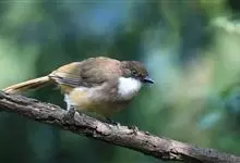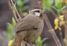 白颊噪鹛是雀形目噪鹛科噪鹛属鸟类,又称土画眉、小画眉、小噪鹃。成鸟额至头顶栗褐色,长眉纹、眼先和颊纹棕白色,眼后至耳羽深褐色,…全部>>