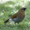 棕噪鹛中型鸟类,体长25~28厘米。上体赭褐色,头顶具黑色羽缘,尾上覆羽灰白色,尾羽棕栗色,外侧尾羽具宽阔的白色端斑。额、眼先、眼周、耳羽上部、脸前部和颏黑色,眼周裸皮蓝色,极为醒目。喉和上胸与背同色,…全部>>