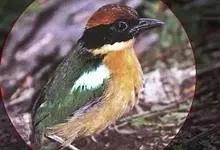 仙八色鸫是雀形目八色鸫科八色鸫属鸟类。雄鸟前额至枕部深栗色,有黑色中央冠纹,眉纹淡黄,背、肩及内侧飞羽辉绿色,飞羽黑色具白翼斑,颏黑褐、喉白,下体淡黄褐色、腹中及尾下覆羽朱红色。雌鸟羽色似雄鸟但较浅淡。…全部>>