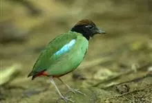 绿胸八色鸫:是雀形目八色鸫科的鸟类,共有12个亚种。体长为16-18厘米,体重65-69克。体型圆胖,尾短,腿长。头黑,上体绿色,两翼深色而具白色斑纹,头顶至后枕深褐,胸及腹部苹果绿,臀亮红。…全部>>