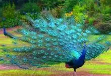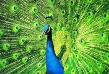 绿孔雀是鸡形目雉科孔雀属鸟类,别名:孔雀、越鸟、爪哇绿孔雀。雄性绿孔雀全身呈翠绿色,并反紫铜色光。头顶有一簇直立的冠羽,尾上复羽发达的约长1米,每羽端部有一个蓝色和翠绿色镶嵌的眼状斑,…全部>>