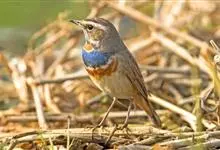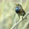 蓝点颏亦称“蓝喉歌鸲”,通称蓝靛颏儿。身体大小和麻雀相似,体长12-13厘米,体重17-18克。头部、上体主要为土褐色。眉纹白色。尾羽黑褐色,基部栗红色。颏部、喉部辉蓝色,下面有黑色横纹。下体白色。…全部>>