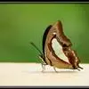 大二尾蛱蝶两翅正面黑色,中域有一浅绿色大型宽带纹,两翅反面浅绿色,中域有一缀黑边的褐色弧纹,亚外缘还有一深褐色横纹,后翅各有尾突两条,…全部>>