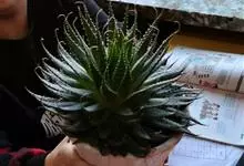 条纹十二卷 Haw.)是芦荟科十二卷属植物,为多年生肉质草本植物。植株高度10-15厘米,其呈莲座状生长;叶片紧密轮生在茎轴上,柔软多汁,呈长三角状披针形,极肥厚;叶面光滑、扁平,色深绿;叶背突起,…全部>>