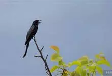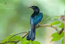 发冠卷尾是中型鸟类,体长28-35厘米。通体绒黑色缀蓝绿色金属光泽,额部具发丝状羽冠,外侧尾羽末端向上卷曲。栖息于海拔1500米以下的低山丘陵和山脚沟谷地带,多在常绿阔叶林、次生林或人工松林中活动。…全部>>