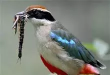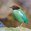 绿胸八色鸫:是雀形目八色鸫科的鸟类,共有12个亚种。体长为16-18厘米,体重65-69克。体型圆胖,尾短,腿长。头黑,上体绿色,两翼深色而具白色斑纹,头顶至后枕深褐,胸及腹部苹果绿,臀亮红。…全部>>