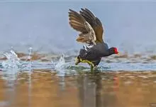 黑水鸡:是鹤形目、秧鸡科的鸟类,共有12个亚种。中型涉禽,体长24-35厘米。嘴长度适中,鼻孔狭长;头具额甲,后缘圆钝;嘴和额甲色彩鲜艳。翅圆形,第2枚初级飞羽最长,或第2枚和第3枚初级飞羽等长,…全部>>