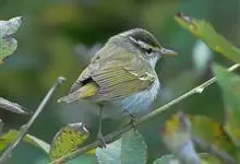 极北柳莺:体长11-13厘米,体小偏灰橄榄色,具明显的黄白色长眉纹,眼先及过眼纹近黑。上体概呈灰橄榄绿色;具甚浅的白色翼斑,大覆羽先端黄白色,形成一道翅上翼斑;中覆羽羽尖成第二道模糊的翼斑;下体白色…全部>>