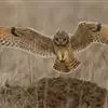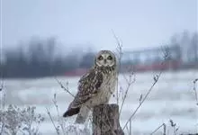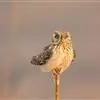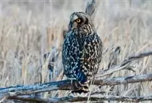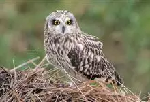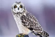 短耳鸮又名小耳木兔、田猫王、夜猫子等,是鸮形目鸱鸮科耳鸮属中小型猛禽动物。成鸟面盘显著,眼周黑色;眼先及内侧眉纹灰白色,面盘余部棕黄色杂以黑色细羽干纹;耳簇羽短小而几乎不外露,…全部>>