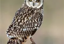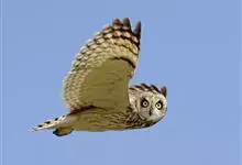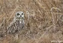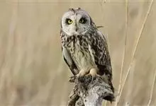 短耳鸮又名小耳木兔、田猫王、夜猫子等,是鸮形目鸱鸮科耳鸮属中小型猛禽动物。成鸟面盘显著,眼周黑色;眼先及内侧眉纹灰白色,面盘余部棕黄色杂以黑色细羽干纹;耳簇羽短小而几乎不外露,…全部>>