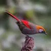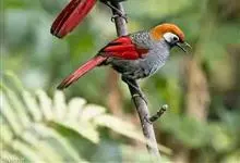 赤尾噪鹛中型鸟类,体长24~28厘米。头顶至后颈红棕色,两翅和尾鲜红色,眼先、眉纹、颊、颏和喉黑色,眼后有一灰色块斑。其余上下体羽大都暗灰或橄榄灰色。特征极明显,特别是通过鲜红色的头顶、翅和尾。…全部>>