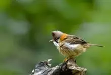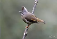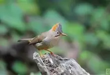 纹喉凤鹛:小型鸟类,体长13-16厘米。头顶和羽冠暗褐色或褐灰色,上体橄榄褐色,飞羽黑褐色,外侧次级飞羽表面橙黄色,构成一块纵形翼斑,极为醒目。颏、喉淡棕白色,具黑色纵纹,腹和尾下覆羽橙黄色。…全部>>