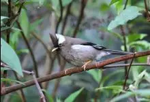 白领凤鹛是画眉科的一类动物。体长15-18厘米。头顶和羽冠土褐色,具白色眼圈,眼先黑色,枕白色,向两侧延伸至眼,向下延伸至后颈和颈侧,在颈部形成白领极为醒目。上体土褐色,飞羽黑色,…全部>>