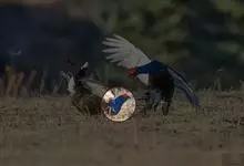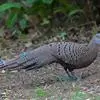 灰孔雀雉:雄鸟体长50-67厘米,体重456-710克;雌鸟体长33-52厘米,体重460-500克。雄鸟全身羽毛黑褐色,…全部>>