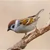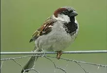 家麻雀:共有13个亚种。是小型鸟类,体长14-16厘米。背栗红色具黑色纵纹,两侧具皮黄色纵纹;颏、喉和上胸黑色,脸颊白色,其余下体白色,翅上具白色带斑。雄鸟与树麻雀的区别在顶冠及尾上覆羽灰色,耳无黑…全部>>