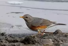 赤颈鸫是鸫科、鸫属中型鸟类,体长22-25厘米。上体灰褐色,有窄的栗色眉纹。颏、喉、上胸红褐色,腹至尾下覆羽白色,腋羽和翼下覆羽橙棕色。虹膜暗褐色,嘴黑褐色,下嘴基部黄色,脚黄褐色或暗褐色。…全部>>