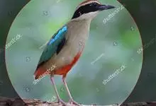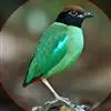 绿胸八色鸫:是雀形目八色鸫科的鸟类,共有12个亚种。体长为16-18厘米,体重65-69克。体型圆胖,尾短,腿长。头黑,上体绿色,两翼深色而具白色斑纹,头顶至后枕深褐,胸及腹部苹果绿,臀亮红。…全部>>