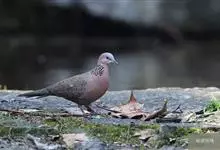 珠颈斑鸠,别名花斑鸠、珍珠鸠、花脖斑鸠、鸪鹪,是鸠鸽科副斑鸠属鸟类。体型中等,体长27~34cm,体重120~205g,雌鸟和雄鸟羽色相似,但雌鸟不如雄鸟羽色亮泽。珠颈斑鸠前额至头顶羽色稍淡,…全部>>