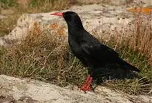 红嘴山鸦,是脊索动物门鸟纲雀形目鸦科鸟类。红嘴山鸦的成鸟通体羽毛纯黑色具有蓝色金属光泽,翼和尾泛有蓝绿色金属光泽;虹膜暗褐色,喙较为尖细,并且呈镰状下弯,喙和脚朱红色。…全部>>