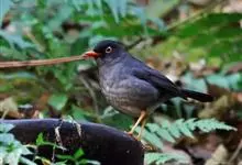 灰背鸫,又名灰乌鸫,是雀形目鸫科鸫属鸟类。雄鸟额及整个上体为橄榄灰色,眼先黑色,头侧微沾棕褐色,耳羽黑褐色杂以细白羽干纹;飞羽和尾羽褐黑色,外翈缀有灰蓝色;下体颏、喉灰白色具黑褐色羽干纹,胸淡灰色,…全部>>