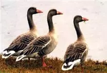灰雁:体长70-90厘米,翼展147-182厘米,体重2.5-4千克,寿命17年。体大而肥胖。嘴、脚肉色,上体灰褐色,下体污白色,飞行时双翼拍打用力,振翅频率高。脖子较长。腿位于身体的中心支点,…全部>>