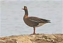 灰雁:体长70-90厘米,翼展147-182厘米,体重2.5-4千克,寿命17年。体大而肥胖。嘴、脚肉色,上体灰褐色,下体污白色,飞行时双翼拍打用力,振翅频率高。脖子较长。腿位于身体的中心支点,…全部>>
