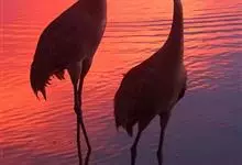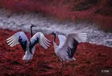 丹顶鹤:是鹤科、鹤属的一种大型涉禽,体长120-160厘米。颈、脚较长,通体大多白色,头顶鲜红色,喉和颈黑色,耳至头枕白色,脚黑色,站立时颈、尾部飞羽和脚黑色,头顶红色,…全部>>