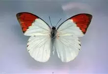 鹤顶粉蝶是鳞翅目粉蝶科鹤顶粉蝶属昆虫,又称端红蝶。雄蝶翅白色,前翅前缘及外缘黑色,自前缘二分之一处至外缘近后角处有黑色锯齿状斜纹,围住顶部三角形赤橙色斑,…全部>>