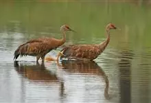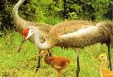 沙丘鹤别名棕鹤、加拿大鹤,是鹤形目鹤科鹤属大型涉禽。成鸟两性相似,雌鹤略小,眼先、前额和头顶裸露部分红色;上体石板灰色,翅覆羽较淡,羽缘锈棕色,羽轴深黑色;尾羽石板灰色,颈部灰蓝色,…全部>>