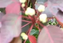 紫锦木是大戟科、大戟属的常绿乔木。叶圆卵形,主脉于两面明显,侧脉数对,边缘全缘,两面红色;花序生于二歧分枝的顶端,总苞阔钟状,裂片呈三角形,边缘具毛,腺体深绿色呈半圆形,…全部>>