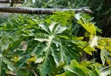 番木瓜,番木瓜科番木瓜属的常绿软木质小乔木,高达10米,具有乳汁;茎不分枝或有时于损伤处分枝;叶大且聚生于茎顶,近似盾形,叶柄中空;花单性或两性,有些品种雄株偶尔生两性花或雌花,…全部>>