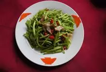 干煸豆角是用四季豆制作作为主要食材,以酱油、香油、味精、醋作为调料制作而成的一道家常菜。口味咸香辣,色泽嫩绿,口感脆嫩,营养丰富。豆角中的纤维有利于降低人体内的胆固醇,…全部>>