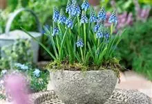 葡萄风信子,是天门冬科蓝壶花属的多年生草本优良观花地被植物,为小型花卉球根植物。根具鳞茎,卵形或近球形,株高5-10cm;基生叶半圆柱状线形;花葶不分枝,总状花序,长椭圆状柱形;花深蓝色,近球形,坛状,…全部>>