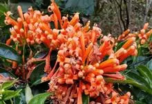 炮仗藤 Miers)紫葳科炮仗藤属藤本植物。小枝顶端有丝状卷须;叶对生,卵形;花萼钟状,橙红色,长椭圆形,花丝丝状,花药叉开;果瓣为革质,舟状。花期1-6月。初夏红橙色的花朵累累成串,状如鞭炮,…全部>>
