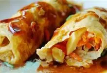 腐皮卷素菜是一道广东省的传统名菜,属于粤菜系。把香菇用清水浸软,去蒂,切细丝,胡萝卜,榨菜分别洗净,切细丝,豆芽,韭黄分别洗净,韭黄切段。用2汤匙油爆香姜丝,胡萝卜,榨菜,放入香菇同炒透,将豆芽放入…全部>>