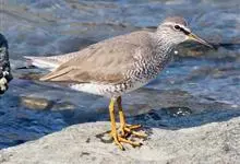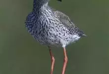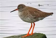 红脚鹬:体长28厘米,上体褐灰,下体白色,胸具褐色纵纹。飞行时腰部白色明显,次级飞羽具明显白色外缘。尾上具黑白色细斑。虹膜黑褐色,嘴长直而尖,基部橙红色,尖端黑褐色。脚较细长,亮橙红色,…全部>>