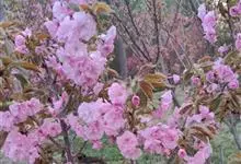 美人梅是蔷薇科李属的落叶小乔木。叶互生,呈广卵形或卵形,紫红色;花呈淡紫红色,半重瓣或重瓣,花叶同放,繁密有香味;果实呈球形,呈鲜红色;花期3-4月;果期5-6月。美人梅原产于美国,…全部>>