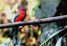 藏朱雀:全长约17-18厘米。雄鸟头部深红色具光辉,喉部暗红色具白色点斑;背部灰白色,各羽具玫瑰红色羽端,形成许多斑纹;腰部淡玫瑰红色;翅暗褐色,沾灰白,羽端沾玫瑰红或灰白色;尾暗棕色,端缘玫瑰红色…全部>>