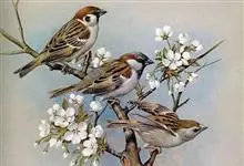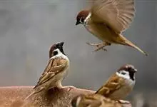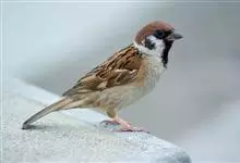 家麻雀:共有13个亚种。是小型鸟类,体长14-16厘米。背栗红色具黑色纵纹,两侧具皮黄色纵纹;颏、喉和上胸黑色,脸颊白色,其余下体白色,翅上具白色带斑。雄鸟与树麻雀的区别在顶冠及尾上覆羽灰色,耳无黑…全部>>