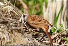 山麻雀:小型鸟类,体长13-15厘米。雄鸟上体栗红色,背中央具黑色纵纹,头棕色或淡灰白色,颏、喉黑色,其余下体灰白色或灰白色沾黄。雌鸟上体褐色具宽阔的皮黄白色眉纹,颏、喉无黑色。…全部>>