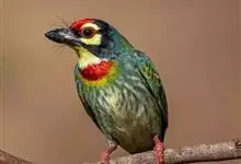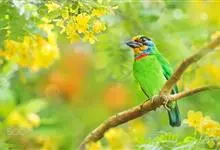 金喉拟啄木鸟,是须鴷科、拟啄木鸟属的鸟类。金喉拟啄木鸟为小型鸟类,体长19-24厘米。额深红色,头顶金黄色,后枕具一大块深红色斑,耳羽和头侧银灰色,上体草绿色,颏和上喉金黄色,下喉淡银灰色,…全部>>