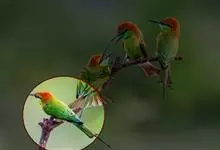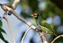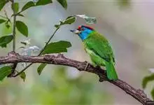 蓝喉拟啄木鸟,是须鴷科、拟啄木鸟属的鸟类。蓝喉拟啄木鸟为小型鸟类,体长20-23厘米。前额至头顶鲜红色,其上有一宽阔的黑色横带,将此红色分为前后二块;头侧、颏、喉蓝色,下喉两侧各具一红色点斑。…全部>>