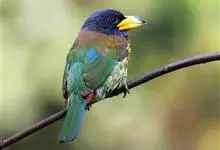 黑眉拟啄木鸟,为须䴕科、拟啄木鸟属的小型鸟类,体长20-25厘米,外形和金喉拟啄木鸟非常相似,但具粗著的黑色眉纹,头侧和耳覆羽以及下喉蓝色而不为银灰色,前颈两侧各有一块鲜红色斑。全部>>
