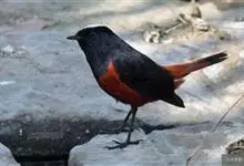 红头咬鹃: 体大,体长约33厘米,体重75-110克。头、颈暗绯红色;背、肩锈褐色。两翅黑色,翅上覆羽和内侧飞羽密被白色细虫蠹斑纹,初级飞羽黑色,外侧具白色羽缘;腰和尾上覆羽较多锈色。中央尾羽深栗色,…全部>>